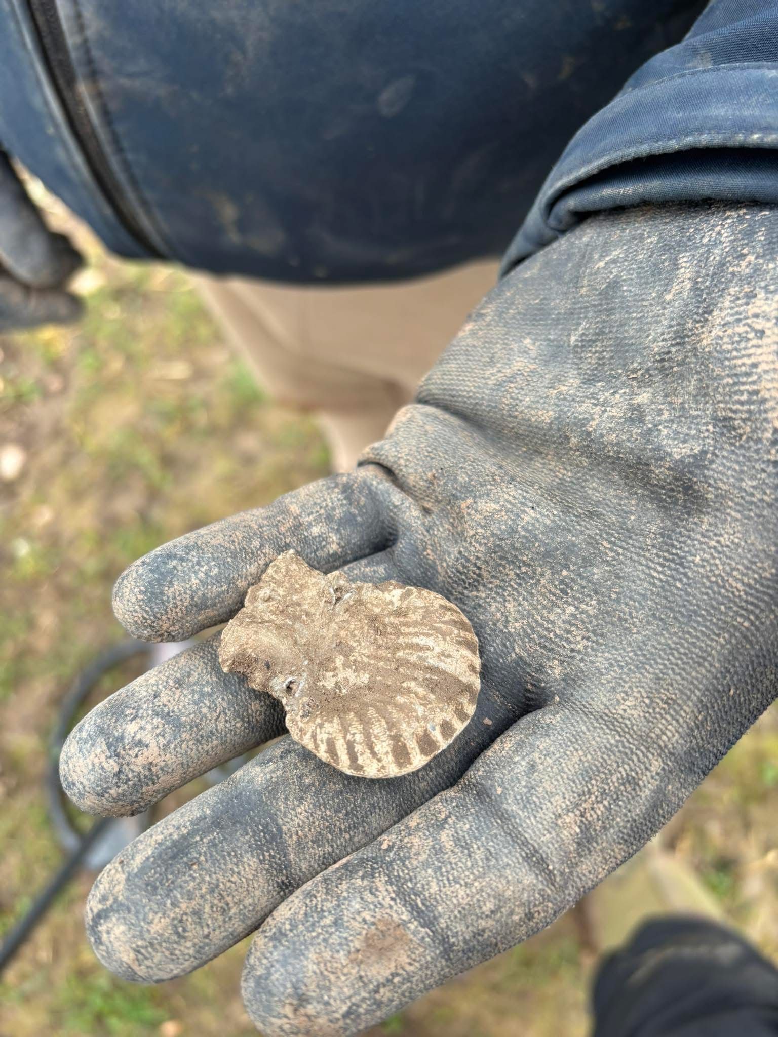 The weather was good and the digging easy. Spirits were high as we set out across the field and we weren’t disappointed. Lots of hammered coins came up, some other silver coins, a couple of very old and interesting buckles, farm tokens and a barrel tap. There was, however, one stand out find that everyone agreed should be find of the day without any competition.