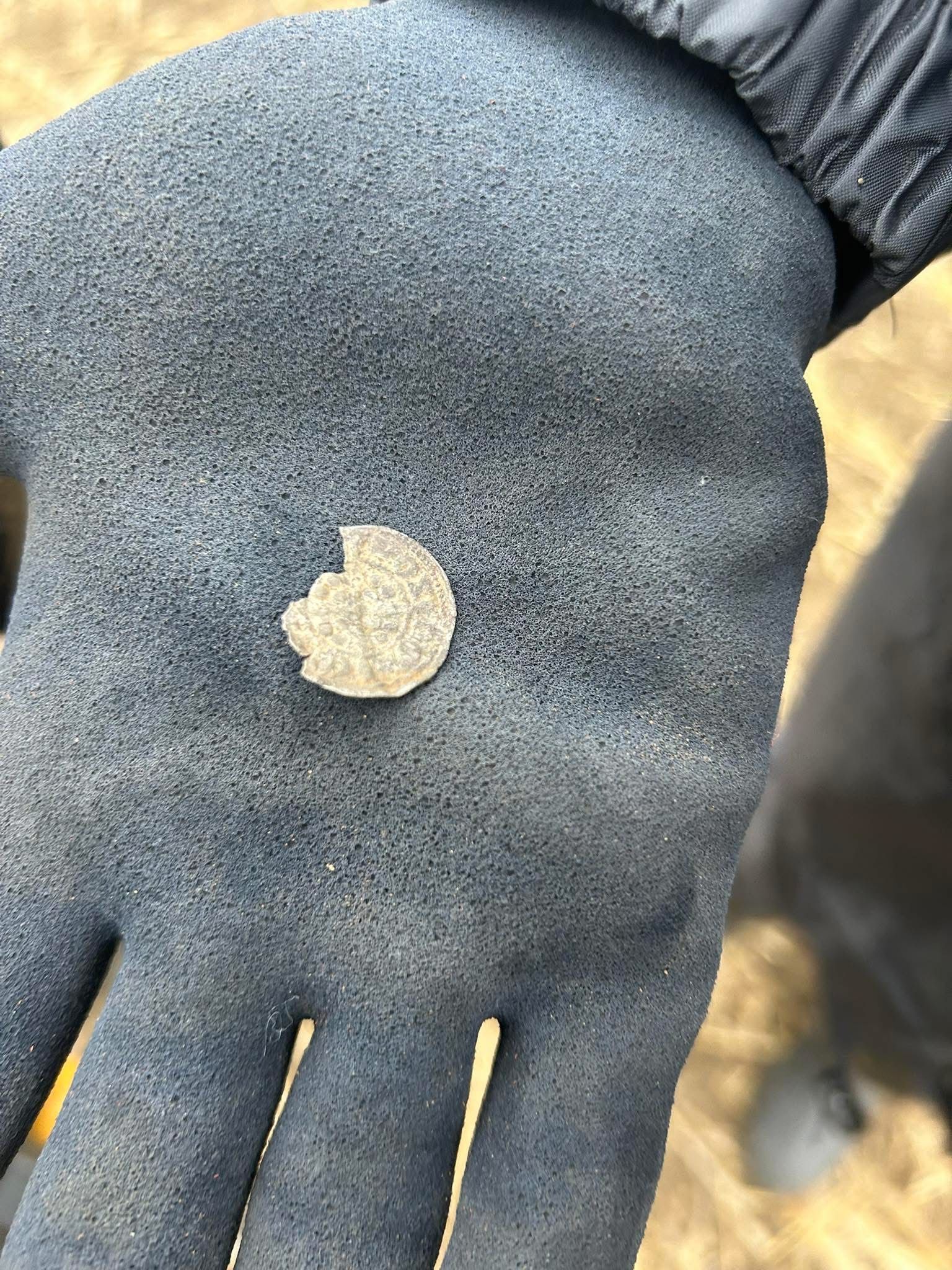 It was a wet and windy day for a dig but that didn’t deter the intrepid Mercian detectorists from turning up to new fields at this farm that has been visited in the past. The spirits were high and the worst of the weather was dodged, as it arrived later in the day. Debbie’s cake was much appreciated by the weary members taking a break from what wasn’t the easiest of digging. There were some lovely finds for some, while others took away more modest items.